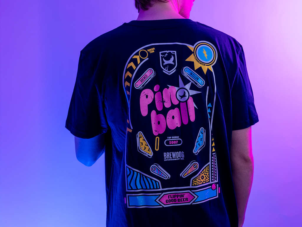 We were briefed to create a new 440ml can for our craft range in grocery playing into the arcade world. Various options were presented including an illustrated can that then became the tshirt. As a big launch in the 440ml range a t-shirt and pin badge were released. This beer is sold in all major UK supermarkets.